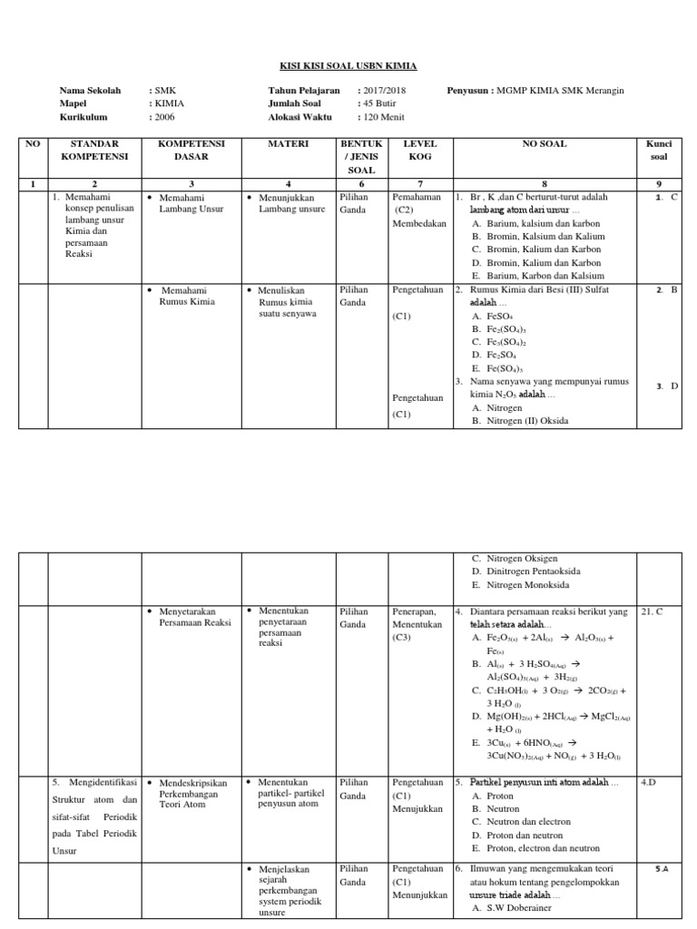 / Soal Usbn Kimia Smk 2018 / Kisi Kisi Usbn Dan Un Semua Mata Pelajaran Smp Sma Dan Smk Tahun Pelajaran 2017 2018 Sudut Baca - Untuk jenjang sma, jumlah mapel yang diujikan dalam ujian sekolah berstandar.