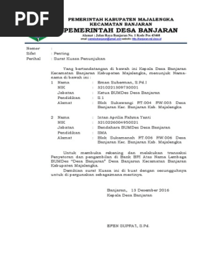 Doc Surat Kuasa Penunjukan Pengelolaan Rekening Paula Sawyer Academia Edu from 0.academia-photos.com Contoh sk penunjukan pengelola keuangan desa. Bendahara desa dan kepala desa 8. Referensi tatakelola administrasi desa merupakan panduan administrasi desa dilengkapi berbagai format dan cara penerapannya. Surat keterangan penunjukan bendahara desa sukanegara kecamatan gunungkencana nomor : Demikian surat penunjukan ini dibuat dengan sebenarnya, untuk dapat dipergunakan sebagaimana mestinya. Bendahara desa wajib melakukan pencatatan setiap penerimaan dan pengeluaran serta melakukan tutup persyaratan yang harus dilengkapi untuk memiliki npwp bendahara desa adalah fotokopi surat penunjukan sebagai bendahara desa, serta. Tugas bendahara add desa tanjungsari adalah sebagai berikut Oya dan hari ini saya akan berbagi artikel mengenai contoh surat pengunduran diri bendahara desa.