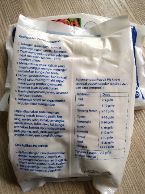 Kemasan repacking, isi 200 gram. Manfaatnya begitu besar sehingga sering dijadikan rekomendasi untuk petani. Nitrogen dalam bentuk nitrat sehingga cepat terserap tanaman. Bawang merah, bawang putih, kentang, wortel, cabe, tomat, semangka, melon, timun, kubis, sawi. Bila tanaman kurang subur, lakukan pengocoran lagi dengan dosis sama tetapi pupuk kalsium ditambah jumlahnya.